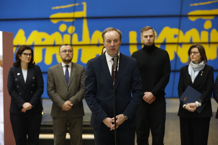 Solidarni z Ukrainą, briefing w ECS, marszałek Mieczysław Struk, fot. Grzegorz Mehring