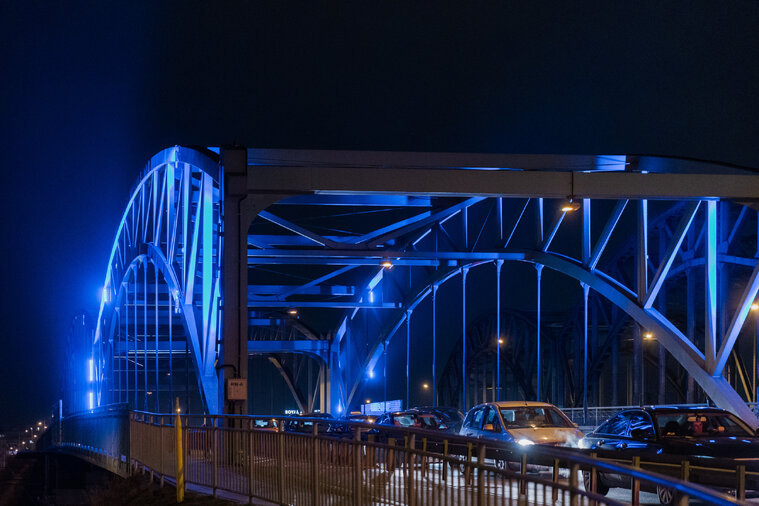 wiadunkt przy ul Kościuszki świecący na niebiesko, fot D Paszlinski, www gdansk pl