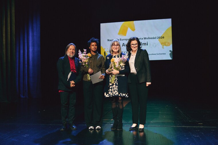 Prezydent Dulkiewicz z laureatkami nagrody Europejski Poeta Wolności fot. Jan Rusek dla IKM
